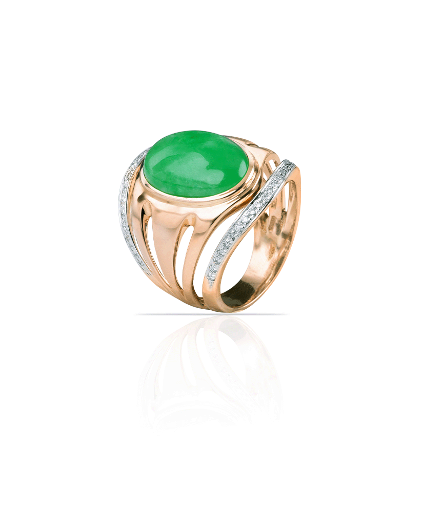 The Ivette Ring is not a simple accessory, but a precious embrace: its structure envelops the finger in the luminous dance of 18kt rose and white gold, creating a chromatic contrast that evokes the reflections of dawn on the rock.