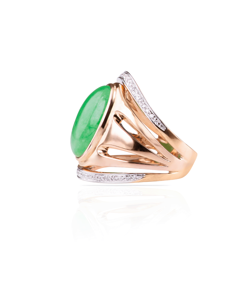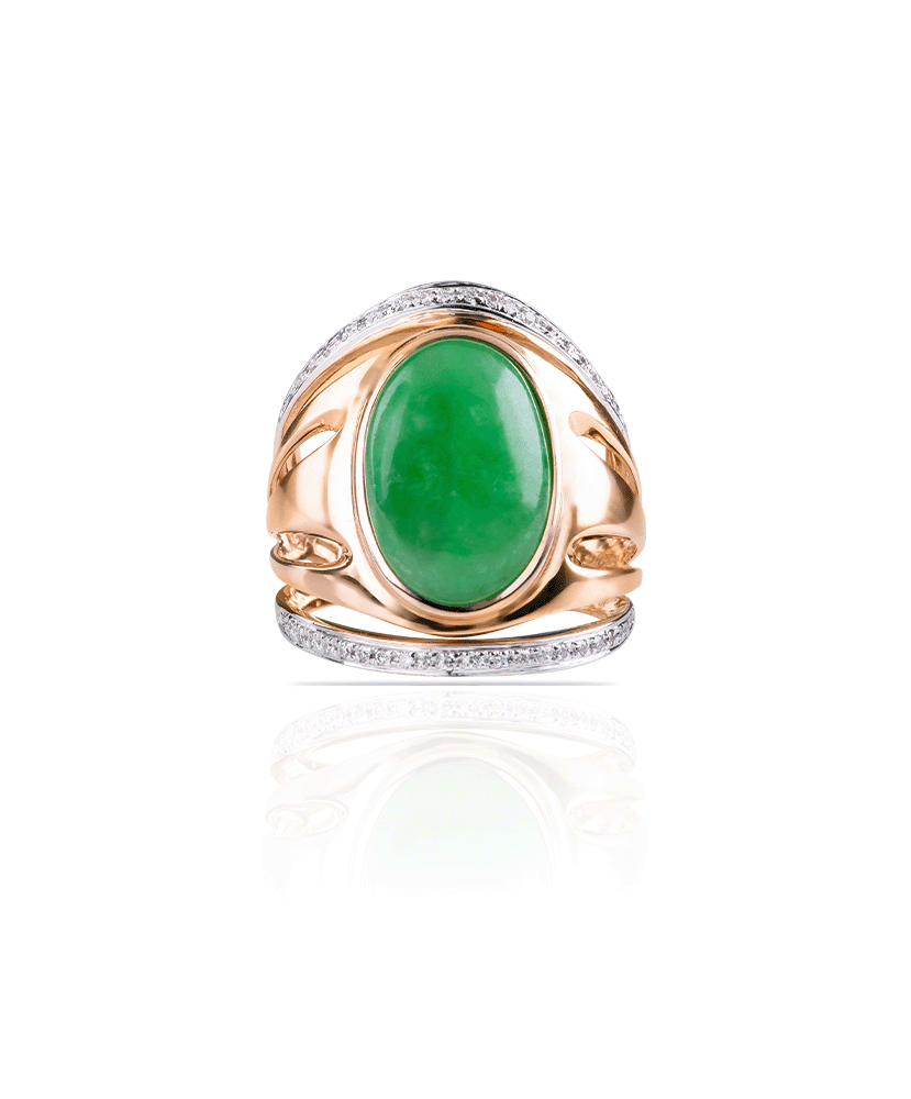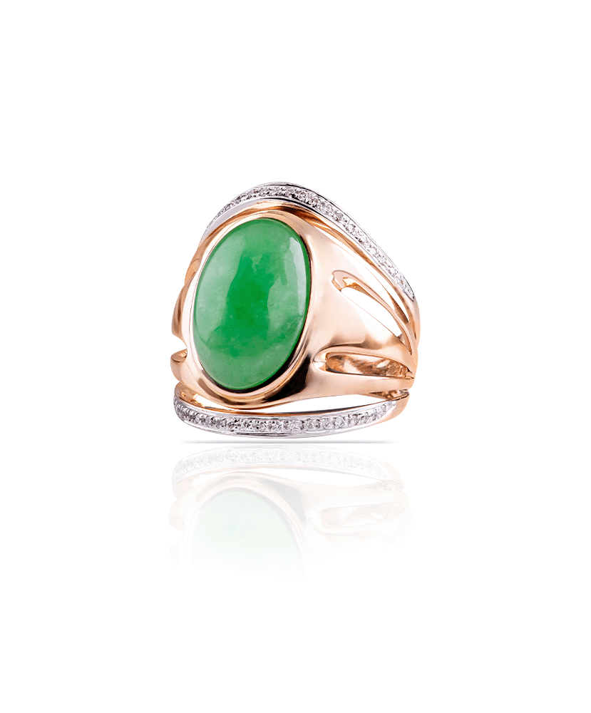 | Gems | Diamonds 0.22Kt (total weight) brilliant round cut. Jade cabochon oval cut. From Burma. |